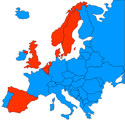 No continente europeu existe o sistema eléctrico síncrono interligado com a maior potência instalada de todo o mundo. O Grupo Regional da Europa Continental, como é designado na entso-e, é constituído pelos países da zona azul, como mostrado neste mapa,