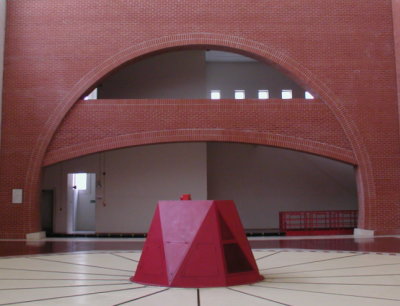e deste contraponto entre o poliedro no topo do gerador e um arco em forma de ferradura que faz lembrar influências da arquitectura islâmica.