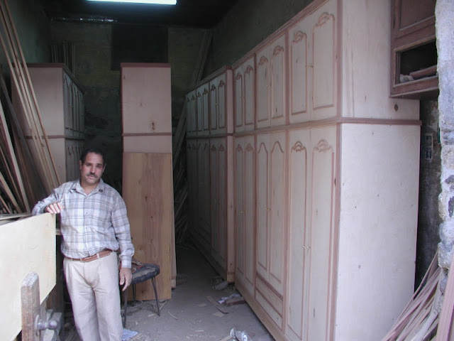 Logo a seguir encontrei um produtor de móveis para encher paredes que não se importou de ser fotografado juntamente com a sua produção mais recente