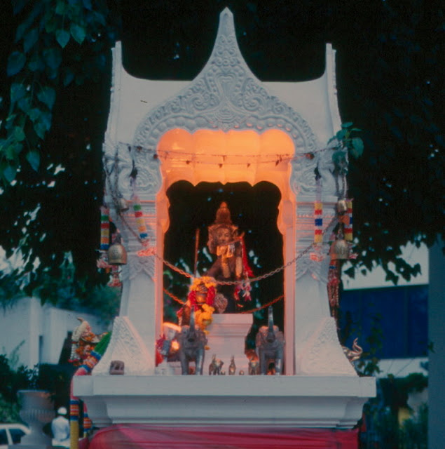 Em cima mostrei uma casa com um pequeno altar na Tailândia e para terminar deixo uma imagem do mesmo altar mostrado em cima, altares muito comuns pelo menos na cidade de Bangkok, onde passei um fim-de-semana há muito tempo, num stop-over vindo de Macau.