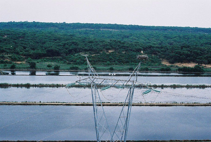 Na senda das imagens dos dois posts anteriores, decidi mostrar mais alguns pormenores dos novos habitats das cegonhas, aves que não alinham com teses ecologistas fundamentalistas pois não têm qualquer problema em aproveitar as oportunidades criadas pelas construções humanas, manifestando grande interesse na utilização dos postes das linhas de muito alta tensão como local para a construção dos seus ninhos.